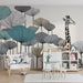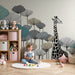 Χαρτί τοίχου παιδικού δωματίου | Μajestic giraffe και στιλιζαρισμένα λουλούδια