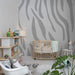 Με τις κυματιστές γκρίζες γραμμές του, αυτή η ριγέ ταπετσαρία με ζέβρες ενσωματώνεται εύκολα σε οποιοδήποτε χώρο, προσθέτοντας υφή και στυλ χωρίς να είναι υπερβολικά τολμηρό. Είναι η ιδανική επιλογή για να δημιουργήσετε ένα ήρεμο αλλά παρανοϊκό περιβάλλον σε ένα παιδικό δωμάτιο.
