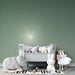 Χαρτί τοίχου βρεφικού δωματίου | Αστέρια νύχτας και λαμπερή σελήνη σε πράσινο φόντο