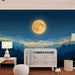Χαρτί τοίχου παιδικού δωματίου | Νυχτερινό τοπίο με φεγγάρι και απαλά σύννεφα