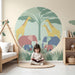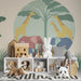 Τα απαλά χρώματα και οι στιλιζαρισμένες μορφές δημιουργούν μια απαλή και ονειρική ατμόσφαιρα, ιδανική για να ξυπνήσει τη φαντασία των μικρών. Οι φοίνικες και τα τροπικά φυτά προσθέτουν μια πινελιά εξωτισμού, ενώ το φωτεινό φόντο διατηρεί το δωμάτιο φωτεινό και φιλόξενο.