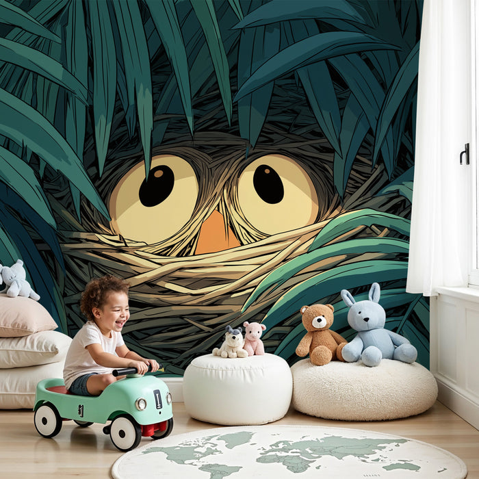 Ανακαλύψτε ένα συναρπαστικό σύμπαν με αυτό το ταπετσαρία για παιδιά που απεικονίζει ένα αξιαγάπητο πουλί που κρύβεται στη φωλιά του στην καρδιά μιας εξωτικής ζούγκλας. Τα τροπικά φύλλα περιβάλλουν τον κεντρικό χαρακτήρα, δημιουργώντας μια ατμόσφαιρα περιπέτειας και μυστηρίου, ιδανική για να διεγείρει τη φαντασία των μικρών εξερευνητών.