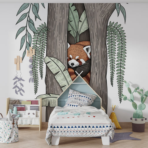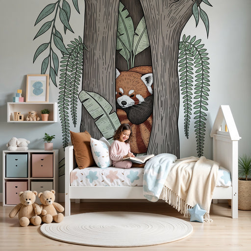 Εμφάνιση όλων των λεπτομερειώνΧαρτί τοίχου παιδικού δωματίου | Κοκκινό πάντα που κοιμάται στη ζούγκλα