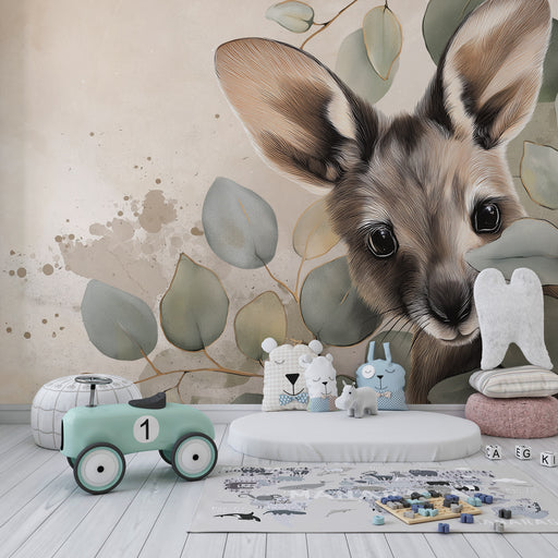 Εμφάνιση όλων των λεπτομερειώνΧαρτί τοίχου παιδικού δωματίου | Μικρό ξαφνικό ζώο μέσα στα φύλλα