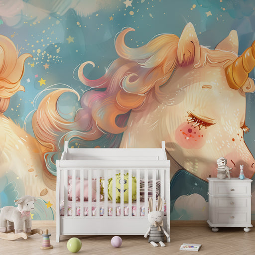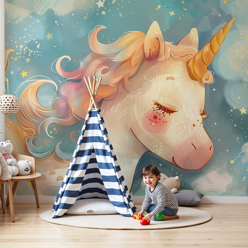 KidsWallΠροσφέρετε στο παιδί σας ένα σύμπαν γεμάτο μαγεία με αυτή την ταπετσαρία για παιδικό δωμάτιο, όπου μια υπέροχη μονόκερος με κλειστά μάτια επιπλέει ...