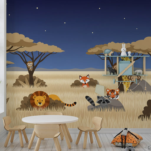 Χαρτί τοίχου παιδικού δωματίου | Νυχτερινό σαφάρι με γοητευτικά ζώα