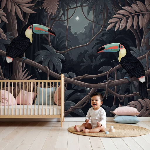 Χαρτί τοίχου για το παιδικό δωμάτιο | Tουκάν στη μυστηριώδη ζούγκλα
