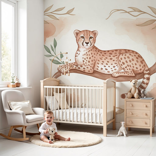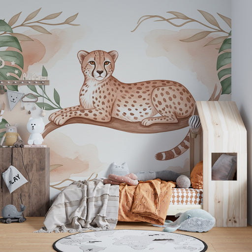 KidsWallΜετατρέψτε το δωμάτιο του παιδιού σας σε έναν χώρο γαλήνης με αυτό το ταπετσαρία για παιδιά, που απεικονίζει ένα μαγευτικό λεοπάρδαλη να ξαποσταίνε...
