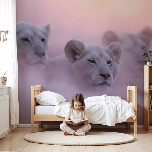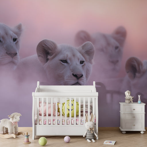 Χαρτί τοίχου παιδικού δωματίου | Βασιλικά λιονταράκια σε ροζ ομίχλη