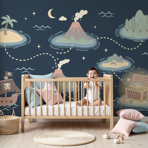 Εμφάνιση όλων των λεπτομερειώνΧαρτί τοίχου παιδικού δωματίου | Περιπέτεια των πειρατών και κρυμμένοι θησαυροί
