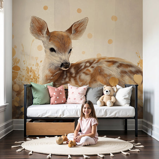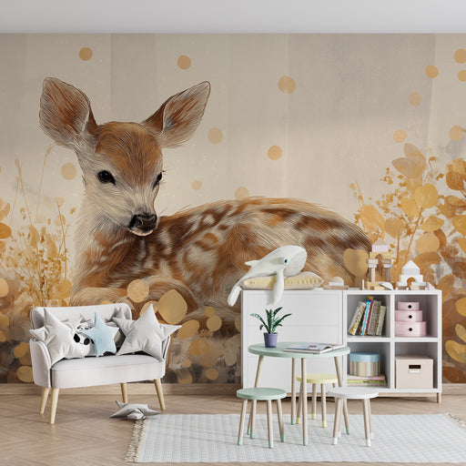 KidsWallΜετατρέψτε το δωμάτιο του μωρού σας σε ένα πραγματικό καταφύγιο άνεσης με αυτό το ταπετσαρία για μωρό που απεικονίζει έναν αγαπημένο ελαφάκι που κο...