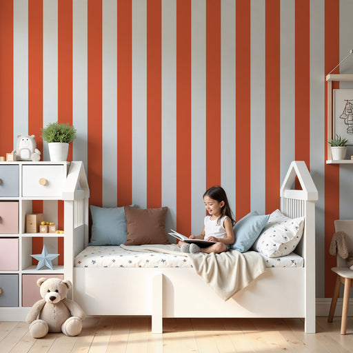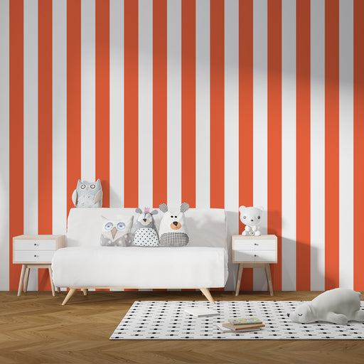Χαρτί τοίχου παιδικού δωματίου | Πορτοκαλί και λευκές ρίγες