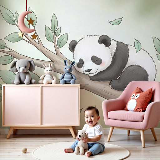 KidsWallΑνανεώστε το δωμάτιο του παιδιού σας με αυτό το ταπετσαρία για παιδιά που απεικονίζει έναν αξιαγάπητο πάντα που κοιμάται σε ένα κλαδί. Αυτό το γλυκ...