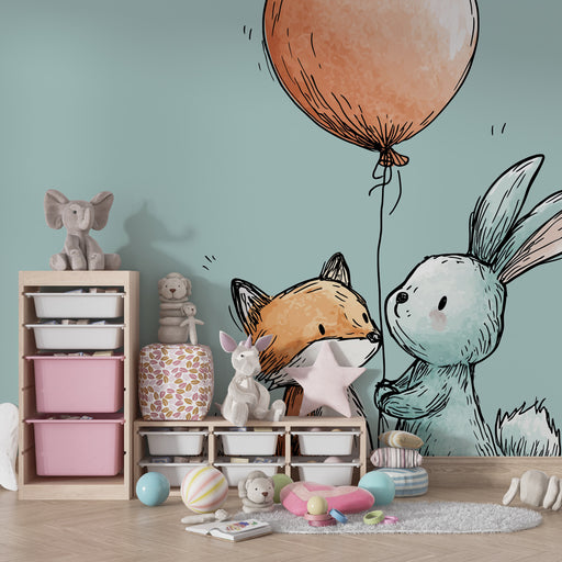 KidsWallΕτοιμαστείτε για έναν εξαιρετικό ταξίδι στο δωμάτιο του παιδιού σας με αυτό το ταπετσαρία για παιδιά που απεικονίζει έναν αλεπού και έναν κουνέλι σ...
