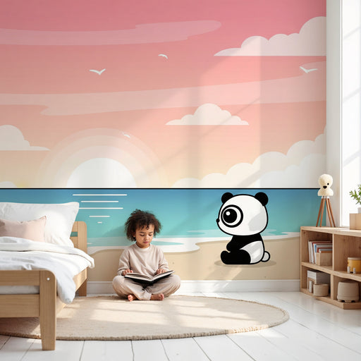 KidsWallΦέρτε μια νότα γαλήνης και ήρεμης ατμόσφαιρας στο παιδικό δωμάτιο με αυτό το χαρτί τοίχου για παιδιά που απεικονίζει έναν αξιαγάπητο πάντα που κοιτ...