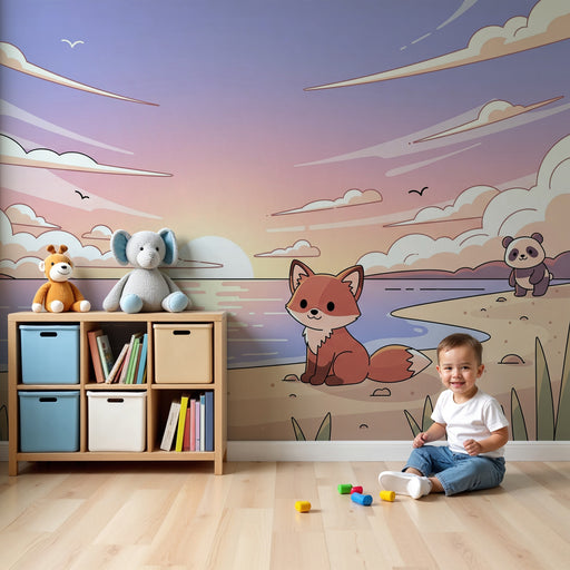 Εμφάνιση όλων των λεπτομερειώνΧαρτί τοίχου παιδικό δωμάτιο | Αλεπού και πάντα στην παραλία