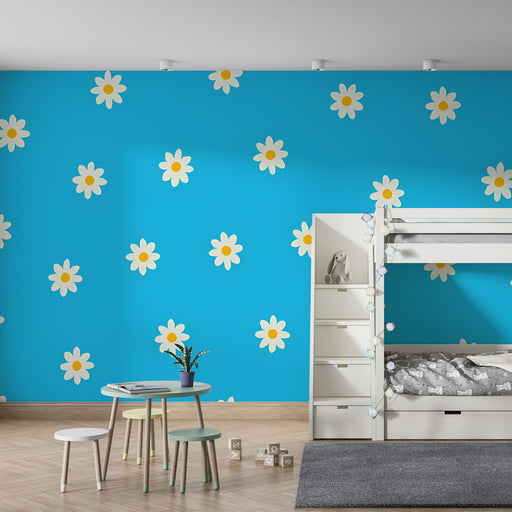 KidsWallΚοσμήστε το δωμάτιο του παιδιού σας με αυτό το ταπετσαρία για παιδικό δωμάτιο με απαλά μοτίβα μαργαριτών σε μπλε φόντο. Τα λευκά λουλούδια με το έν...