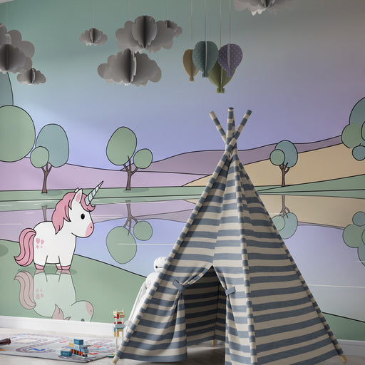 KidsWallΜετατρέψτε το δωμάτιο του παιδιού σας σε ένα παραμυθένιο σύμπαν με αυτό το ταπετσαρία για παιδιά που απεικονίζει έναν αξιαγάπητο μονόκερο να ξαπλών...
