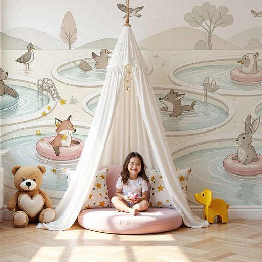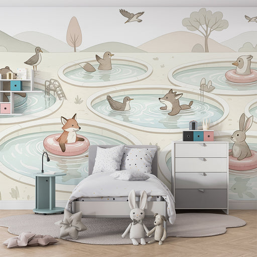 Εμφάνιση όλων των λεπτομερειώνΧαρτί τοίχου παιδικού δωματίου | Ζώα το καλοκαίρι σε πισίνες