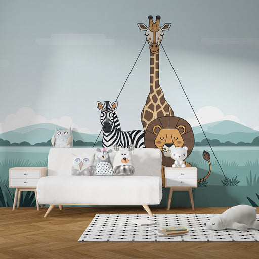KidsWallΔημιουργήστε μια τρυφερή και μαγευτική ατμόσφαιρα με αυτήν την ταπετσαρία για βρεφικό δωμάτιο όπου χαριτωμένα ζώα της σαβάνας επιπλέουν ήρεμα ανάμε...