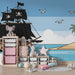 Καταδυθείτε σε έναν κόσμο περιπέτειας και ανακαλύψεων με αυτό το ταπετσαρία παιδικού δωματίου που απεικονίζει ένα υπέροχο πειρατικό πλοίο που πλέει στα τυρκουάζ νερά. Με τα μαύρα πανιά του στολισμένα με κρανία, αυτό το πλοίο υπόσχεται συναρπαστικές εξερευνήσεις προς μυστηριώδη νησιά.