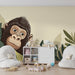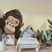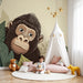 Οι ποικίλες φυλλώσεις, ζωγραφισμένες σε ηρεμιστικούς τόνους πράσινου και μπεζ, προσθέτουν μια πινελιά φύσης στον χώρο. Κάθε λεπτομέρεια, από τις υφές των φύλλων μέχρι τα αξιαγάπητα χαρακτηριστικά του πίθηκου, σχεδιάστηκε με προσοχή για να δημιουργήσει ένα φιλόξενο και ευχάριστο περιβάλλον, ιδανικό για να κοιμηθεί και να ονειρευτεί.