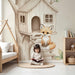 Ο αλεπούς, με το φωτεινό του τρίχωμα και τα περίεργα μάτια, κάθεται στα ξύλινα σκαλοπάτια που οδηγούν στο αναρτημένο του σπίτι. Τα πυκνά φύλλα που περιβάλλουν αυτήν τη σκηνή προσθέτουν μια πινελιά φύσης, δημιουργώντας μια ζεστή και φιλόξενη ατμόσφαιρα. Κάθε λεπτομέρεια, από τις αποχρώσεις του ξύλου του σπιτιού έως τα απαλά φύλλα που περιβάλλουν το χώρο, είναι σχεδιασμένη για να ξυπνήσει τη φαντασία των μικρών.