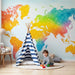 Χαρτί τοιχογραφίας παγκόσμιος χάρτης | Σχεδιάστε ακουαρέλα πολύχρωμη