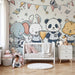 Αυτό το ταπετσαρία παιδιών παρουσιάζει μια χαρούμενη ομάδα εικονογραφημένων ζώων, ντυμένων για ένα ποδοσφαιρικό παιχνίδι. Αξιαγάπητοι πάντες, ελέφαντες, λιοντάρια και πολλά άλλα, παίζουν μαζί και γιορτάζουν τη νίκη τους, κρατώντας το τρόπαιό τους. Τα πολύχρωμα γιρλάντες προσθέτουν μια γιορτινή πινελιά σε αυτήν την αστεία και δυναμική σκηνή.