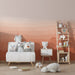 Transform your baby's room with this nursery room wallpaper that evokes a soothing landscape in shades of pink and terracotta. The delicate nuances create a warm and serene atmosphere, ideal for sleep and relaxation.