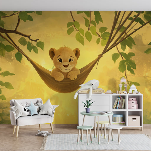 View full detailsNursery room wallpaper | Playful lion cub in a hammock