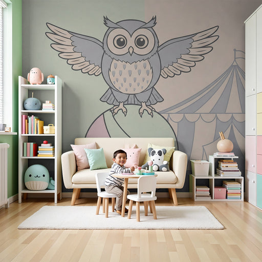 Nursery room wallpaper | Acrobatic owl and circus tent