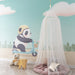 The tranquil light blue background and fluffy clouds create a serene atmosphere, while meticulous details, such as the little flower basket on the scooter, stimulate the imagination of the little ones. This enchanting decor encourages adventure and exploration, perfect for inspiring creative dreams.