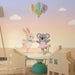 Transform your baby's room into a joyful universe with this nursery room wallpaper featuring an adorable rabbit and a koala dancing together. Their joyful expressions and charming costumes bring a playful and warm touch to the space.