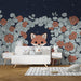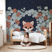 The vibrant flowers and delicate leaves, painted in soft shades of blue and orange, create a soothing and warm atmosphere. Every detail, from the petals to the subtle nuances of the fox's fur, is carefully crafted to offer a harmonious and captivating result. This immersive decor stimulates the imagination and invites escape.
