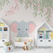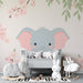 Redecorate your baby's room with this charming nursery room wallpaper, featuring an adorable elephant surrounded by delicate pink flowers. This enchanting decor creates a soft and soothing atmosphere, perfect for your little one's dreams.