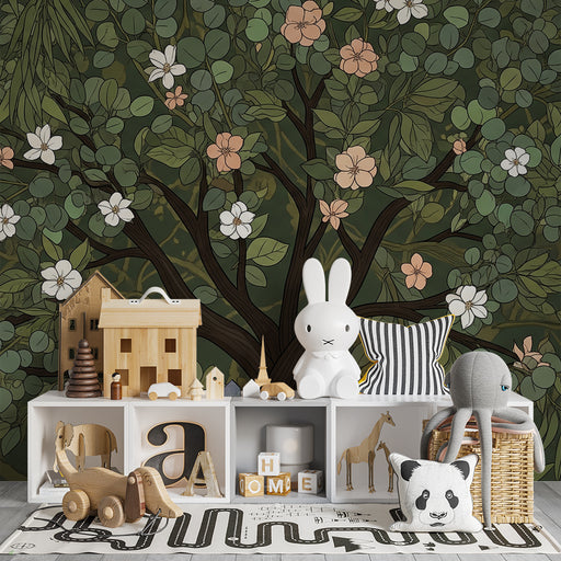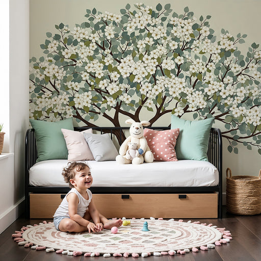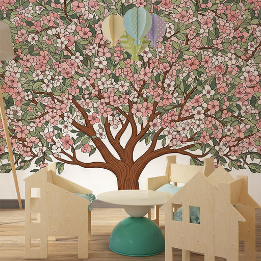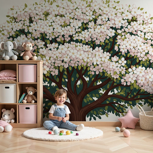 View full detailsNursery Wallpaper | Blossoming Tree with Soft Pastel Leaves