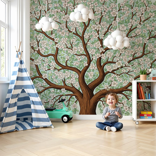 KidsWallTurn your baby's room into an enchanted garden with this baby wallpaper featuring a majestic flowering tree. Its branches stretch gracefully, adorn...