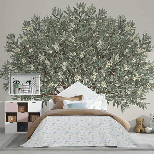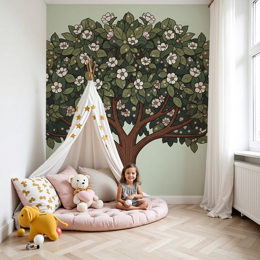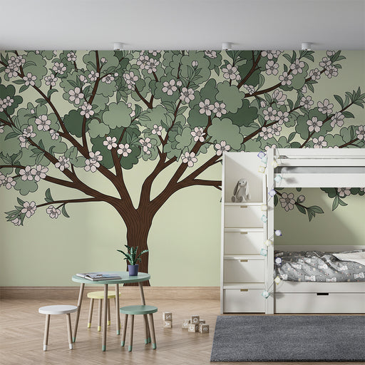 View full detailsBaby room wallpaper | Stylized tree with green leaves and delicate flowers