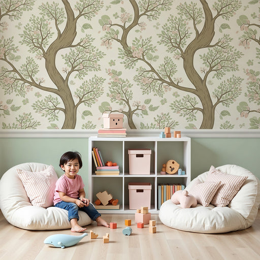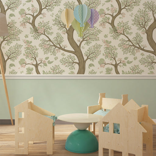 KidsWallTurn your baby's room into a magical garden with this nursery wallpaper featuring majestic flowering trees. The delicate branches, adorned with gre...