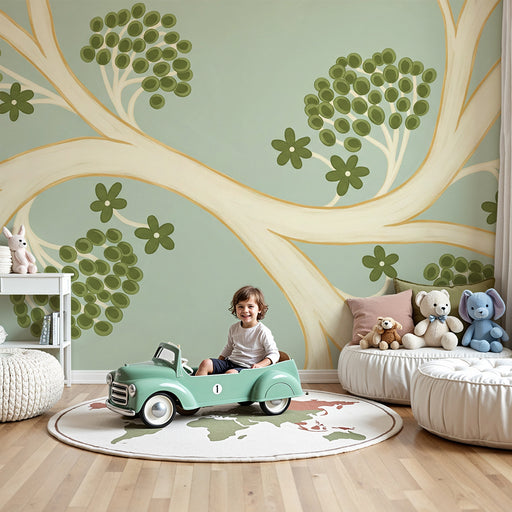 KidsWallTransform your baby's room into a calm and natural space with this baby wallpaper featuring a stylized tree. The soft branches and green leaves cre...