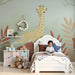 Transform your baby's room into an enchanting space with this nursery room wallpaper featuring an adorable giraffe surrounded by colorful foliage. This delicate illustration invites discovery and wonder, creating a soft and soothing atmosphere.