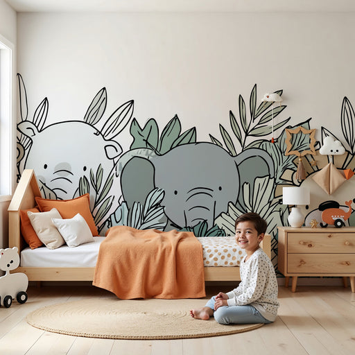 View full detailsKids room wallpaper | Curious elephant among the foliage