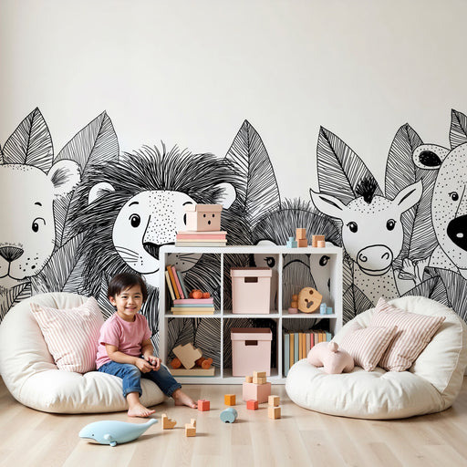 KidsWallTransform your child's room into a real safari with this kids room wallpaper depicting adorable animals from the savannah. A smiling lion, a gentle...