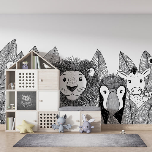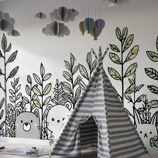 KidsWallTransform your child's room into a true haven of peace with this kids room wallpaper featuring adorable animals amidst lush vegetation. A brown bea...