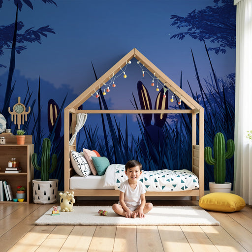 KidsWallTransform your child's universe into a nocturnal adventure with this kids room wallpaper captivating. In the heart of a wild nature, a mysterious l...