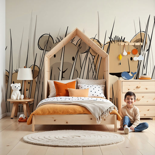 KidsWallTake your child on a journey to the heart of the savannah with this captivating kids room wallpaper. A majestic giraffe, with its slender silhouett...