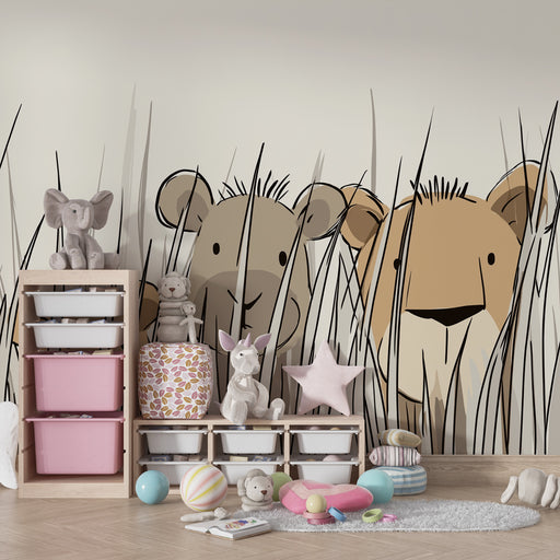 KidsWallCreate a playful and wild atmosphere in your child's room with this kids room wallpaper featuring curious lion cubs hiding in the tall grass. These...