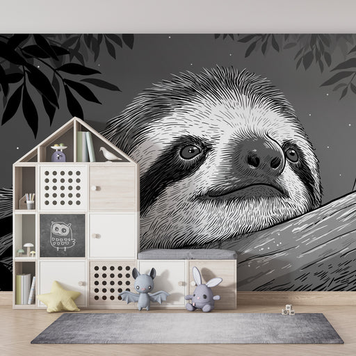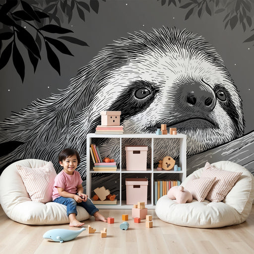 KidsWallRedecorate your child's room with this kids room wallpaper featuring a contemplative sloth in its natural habitat. Hanging from a branch, this ador...