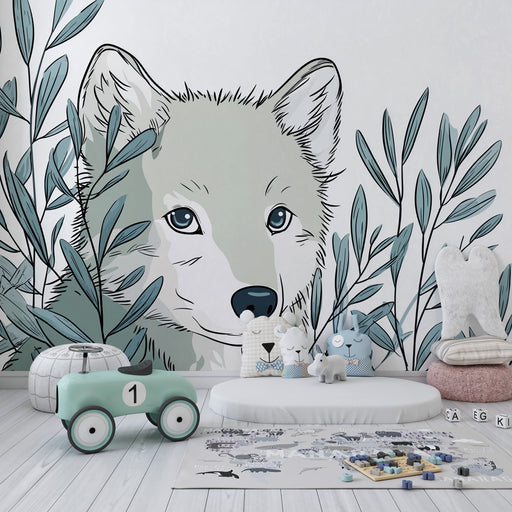 View full detailsKids room wallpaper | Fox face and delicate foliage